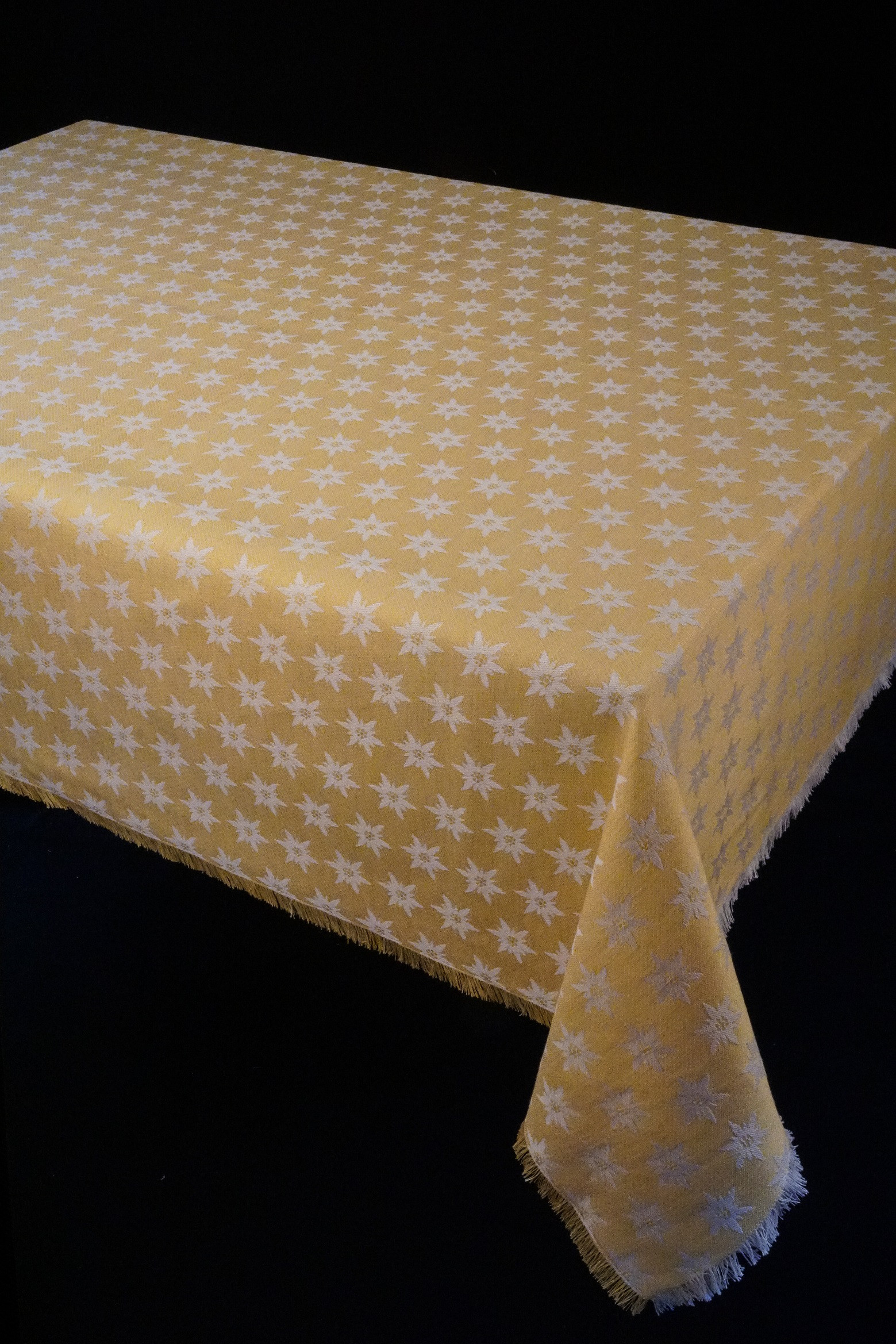Die Tischdecken werden in den Standardgrößen für 6, 8 und 12 Personen in rechteckigen, quadratischen, runden und ovalen Formen hergestellt. Normalerweise berechnen wir 30 cm Sturz pro Seite, wenn man bedenkt, dass sich die Tischdecke beim ersten Waschen um ca. 5-8% einziehen kann. Für Extra-Anfertigungen, können Sie natürlich jede Art von Stoff in jeder gewünschten Größe bis zu einer maximalen Breite von 300 cm bei uns bestellen. Die Länge ist unbegrenzt. Es gibt verschiedene Veredelungen: die klassischen Fransen, 4 cm Saum oder 4 cm Saumstich.
