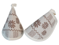 Topflappen aus Baumwollmischung (50%) und Leinen (50%). Der angegebene Preis gilt für 1 Paar (2 Stück). Hervorragende Konsistenz und waschbeständig. Passt gut zu unseren Geschirrtüchern und / oder Tischdecken.
