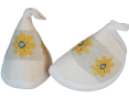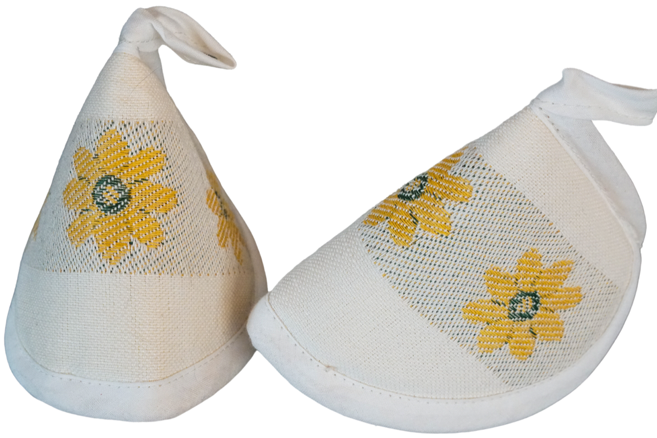 Topflappen aus Baumwollmischung (50%) und Leinen (50%). Der angegebene Preis gilt für 1 Paar (2 Stück). Hervorragende Konsistenz und waschbeständig. Passt gut zu unseren Geschirrtüchern und / oder Tischdecken.