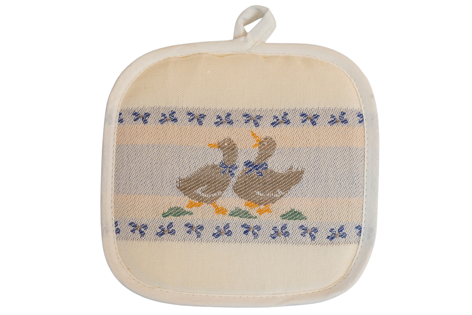 Der Topflappen ist ein sehr nützliches Produkt für die Küche und wird oft als Dekoration auf der Küchenarbeitsplatte verwendet. Diese Topflappen aus Baumwolle (50%) und Leinen (50%) haben eine hervorragende Konsistenz und sind sehr waschbeständig. Sie passen gut zu unseren Geschirrtüchern und / oder Tischdecken. Sie sind mit einem Polyestermaterial gefüllt.