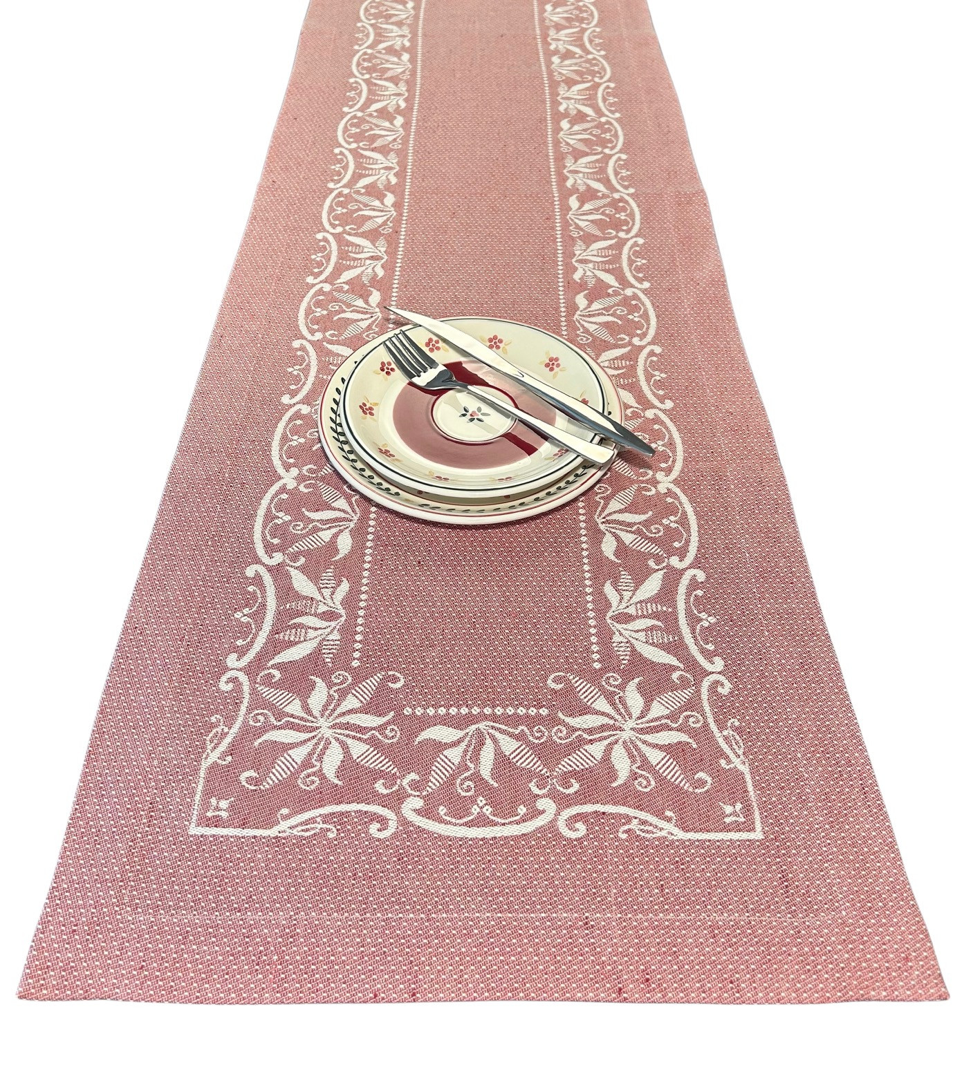 La striscia, detta anche "runner", é un articolo molto richiesto. Si usa come centrotavola, oppure per la cassapanca, per le credenze e mensole. La striscia viene usata spesso dai giovani anche come sostituzione alla tovaglia, messa sulla larghezza della tavola, é molto richiesta come tête à tête. Specialmente per due persone. Oltre a una vasta gamma di disegni e misure standard cm 100x40 e cm140x40 si possono realizzare con ogni tessuto richiesto e in qualsiasi altra misura. Le rifiniture si fanno con la frangia, orlo e pizzo. La striscia si può lavare fino a 60 gradi in lavatrice. Le istruzioni di lavaggio vengono inviate con il prodotto.