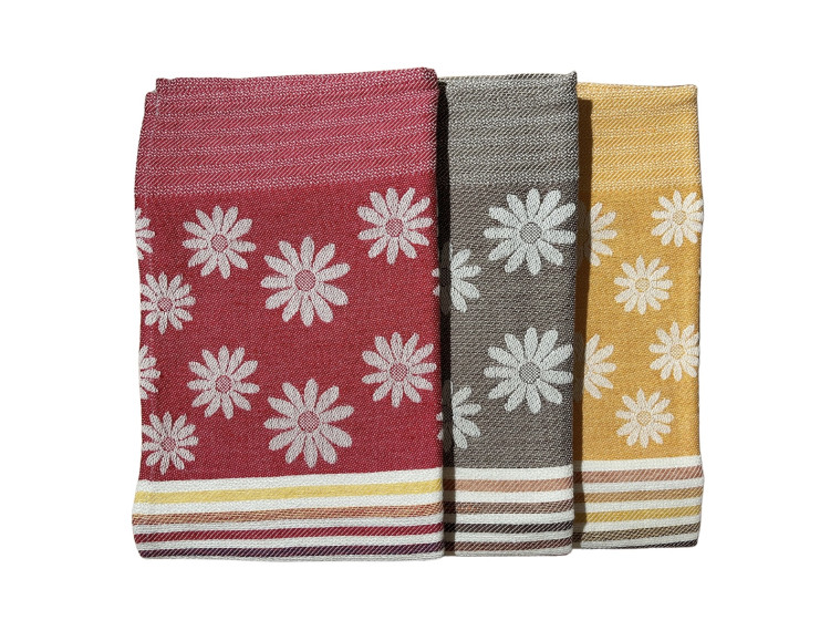 Strofinaccio tessuto in misto cotone (50%) e lino (50%). Molto assorbente e di ottima resistenza. Possiamo anche realizzare strofinacci personalizzati con il proprio disegno o logo su richiesta via e-mail.
