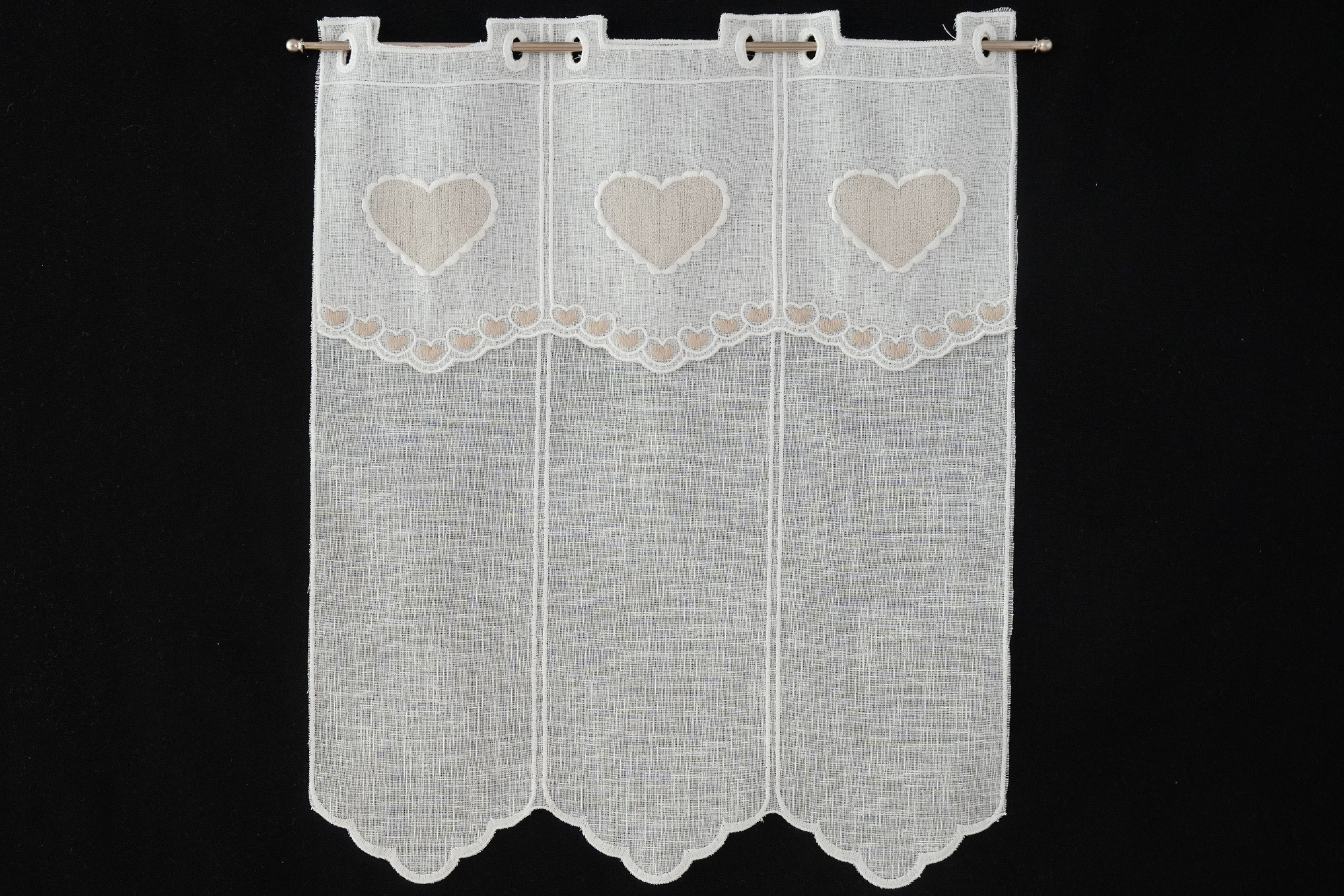 La tendina a vetro viene di solito appesa sulle finestre coprendo metà del vetro. Offriamo diverse soluzioni per appenderle e vi invitiamo a contattarci in merito. Questa tendina è disponibile in diverse altezze, mentre la larghezza può essere ordinata in base alla necessità di ogni cliente. la tendina presenta in alto un doppio strato includendo anche la mantovana. La sua struttura a fasce ricamate rende facile il taglio e rifinitura della tendina. Nel caso si ordina una misura troppo grande, basta tagliare via le fasce di troppo e la tendina è subito pronta da appendere, senza dover cucire o rifinire il taglio. È adatta per qualsiasi ambiente casalingo.